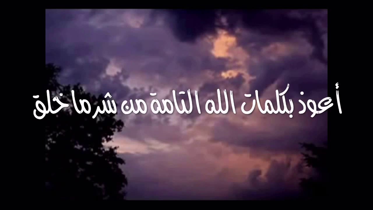 - أَعُوذُ بِكَلِمَاتِ اللهِ التَّامَّةِ مِنْ شَرِّ مَا خَلَقَ، وَذَرَأَ، وَبَرَأَ، وَمِنْ شَرِّ مَا يَنْزِلُ مِنَ السَّمَاءِ.