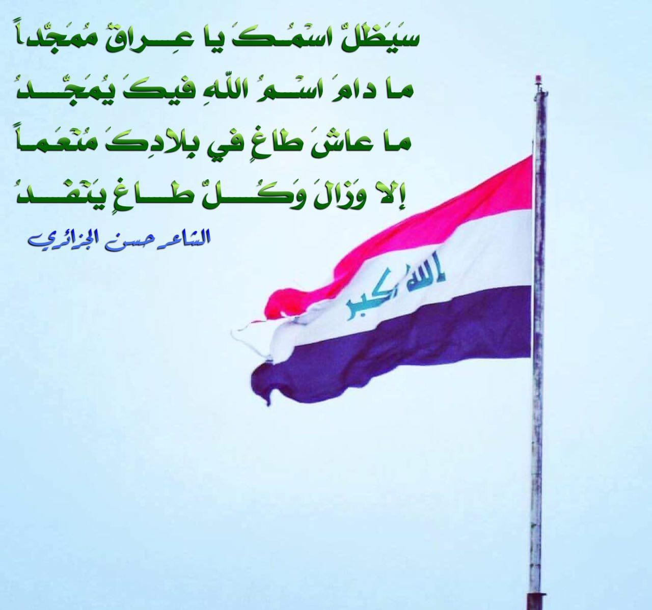 - أيها الوطن القوي بلادي العراق، أنت وطني الأول والأخير، واجبك هو أهم ما أقوم به