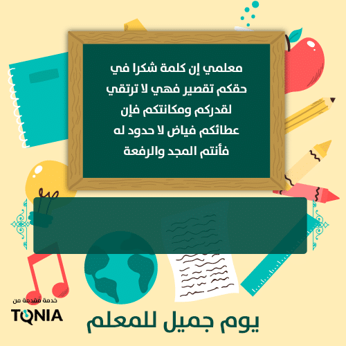 المعلم له مكانته في المجتمع الذي يسعى الى تفوق ونجاح الطالب خلال مسيرته التدريسية، وسنعرض اليكم تصميم يوم المعلم كما يلي: