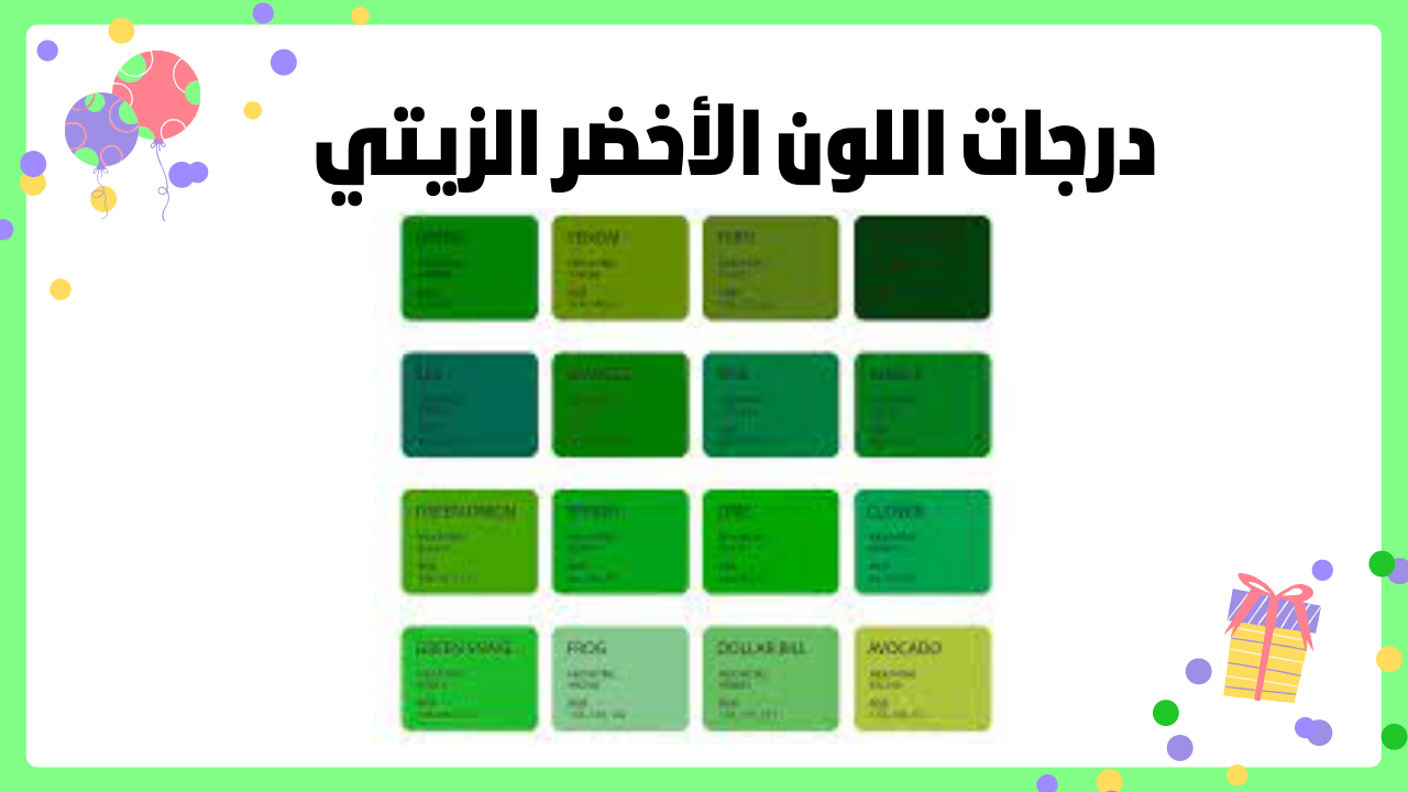 لا تتوانى دور الأزياء والموضة في تقديم كل عام، صيحة جديدة من صيحات الموضة، والتي يتخللها الألوان الجميلة الجذابة، وقد جاء في طليعة تلك الألوان المميزة التي واكبت الحداثة والتطور هو اللون الأخضر بكافة تدرجات، وقد كان اللون الأخضر الزيتي واحد من تلك الألوان التي تصدرت الملابس والأثاث في الصيحات الأخيرة، وهذا كونه من رمز من رموز الجمال وإبراز ملامح الشخصية بشكل كبير، وإعطاء الشخص الرصانة والهدوء، عدا عن غيرها من المزايا التي تميز بها اللون الزيتي عن غيره من درجات اللون الأخضر، علاوة عن هذا فإننا نحصل على اللون الزيتي من خلال مزيج من اللون الأخضر مع اللون الأصفر ىوالأحمر، بنسب متفاوتة، وفق مجموعة من المعايير، التي تعطينا النتيجة المطلوبة، ولهذا نرفق لكم درجات اللون الزيتي، وهو كالتالي: