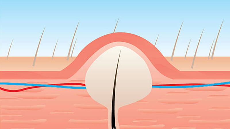 - تجمع خلايا الجلد الميت: يعتبر تجمع الجلد الميت والشعر الذي يعمل على تكوين الكيس الشعري.