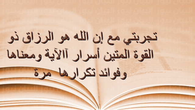 تجربتي مع إن الله هو الرزاق ذو القوة المتين