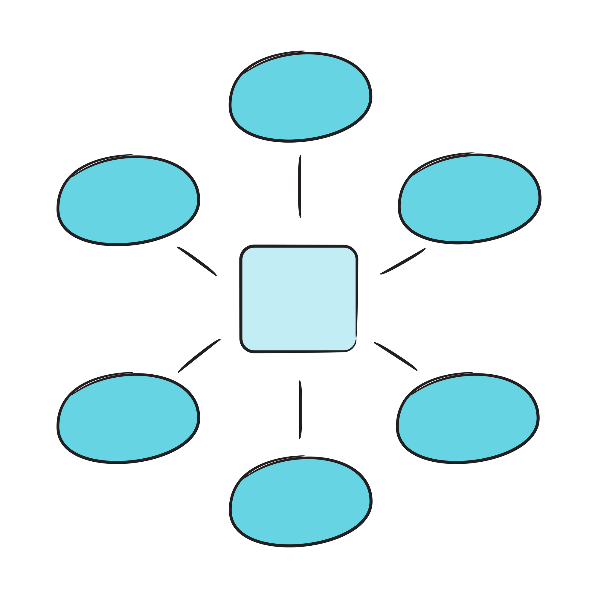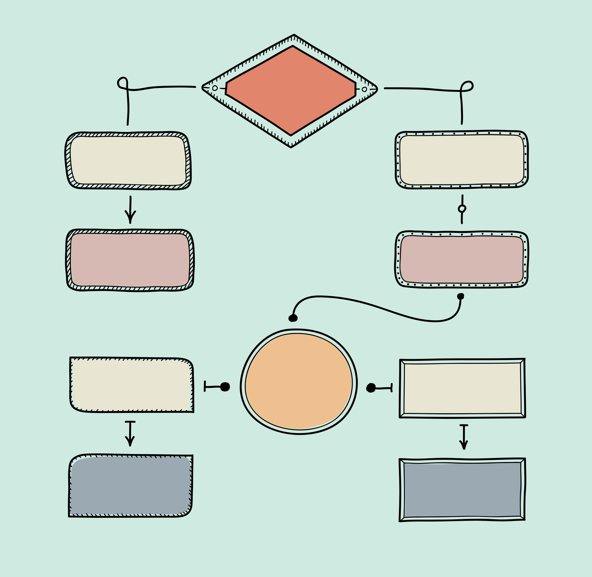 Hand drawn vector illustration of retro flowchart with space for your text. Isolated on turquoise background