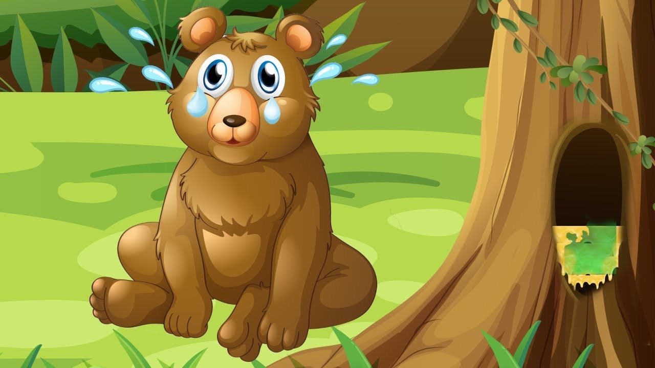ولكن في يوم رجعت الحيوانات ولكنها وجدت الدب واقف تحت الشجرة ويبكي بحرقة، فسألته الحيوانات ما بك تبكي يا دب، فقال أنام تحت الشجرة وتحرقني الشمس وأراكم تسعون للحصول على الطعام وأنا أنام فقط، وكان قد طارد ثعبان فأر بجانب الشجرة فقام بإلقاء السم الخاص فيه ولكنه وقع في العسل الذي يوجد بجانب الشجرة، فقال قد ذهب العسل سدى ولا يوجد حالياً لي طعام أتغذى عليه في فصل الشتاء، فنصحته الحيوانات أن يقوم كل صباح ويبدأ معهم بالبحث عن الطعام ليأكل ويخزن لموسم الشتاء.