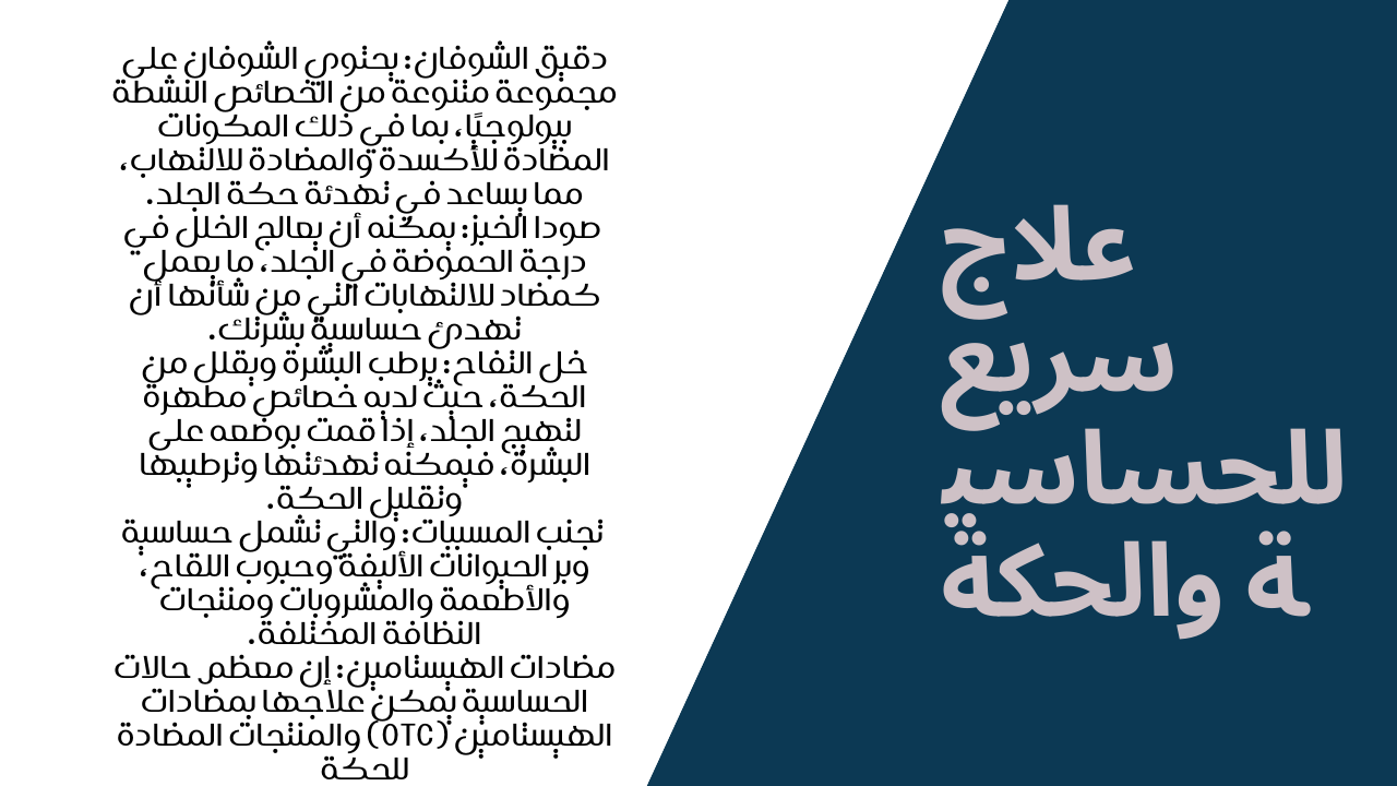 ان معرفة السبب الذي يعزى له الحساسية والحكة الشديدة، التي أصابت الوجه لها دور كبير في تحديد العلاج المناسب الذي بالامكان اعتماده في تخفيف حدتها، وكذلك أيضاً تجنبه في الأوقات الأخرى، وقد كانت حساسية الوجه من المشكلات الشائعة لدى الشباب على وجه الخصوص، ووجدت مجموعة من الكريمات المستخدمة كعلاج للحساسية والحكة، ومن أفضلها: