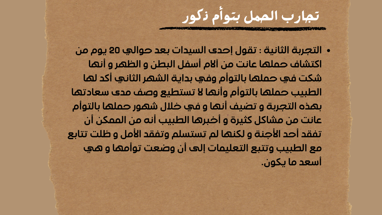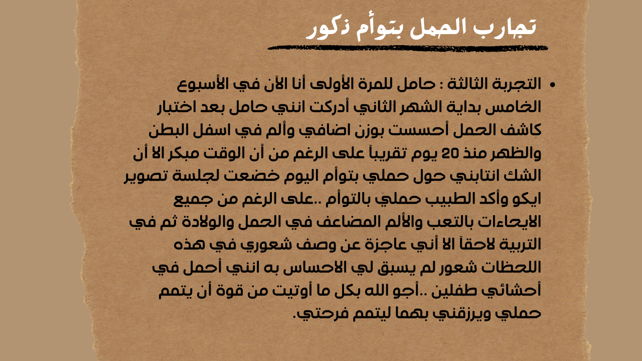 تجارب الحمل بتوأم ذكور
