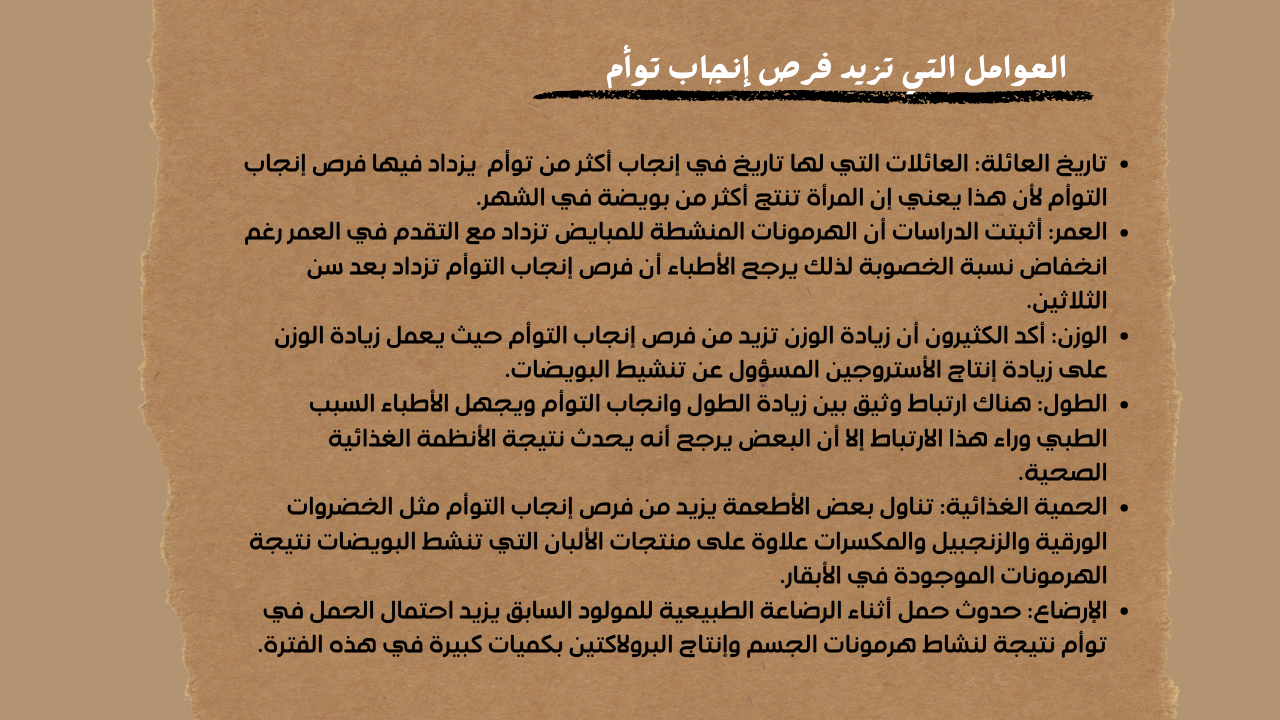 العوامل التي تزيد فرص إنجاب توأم