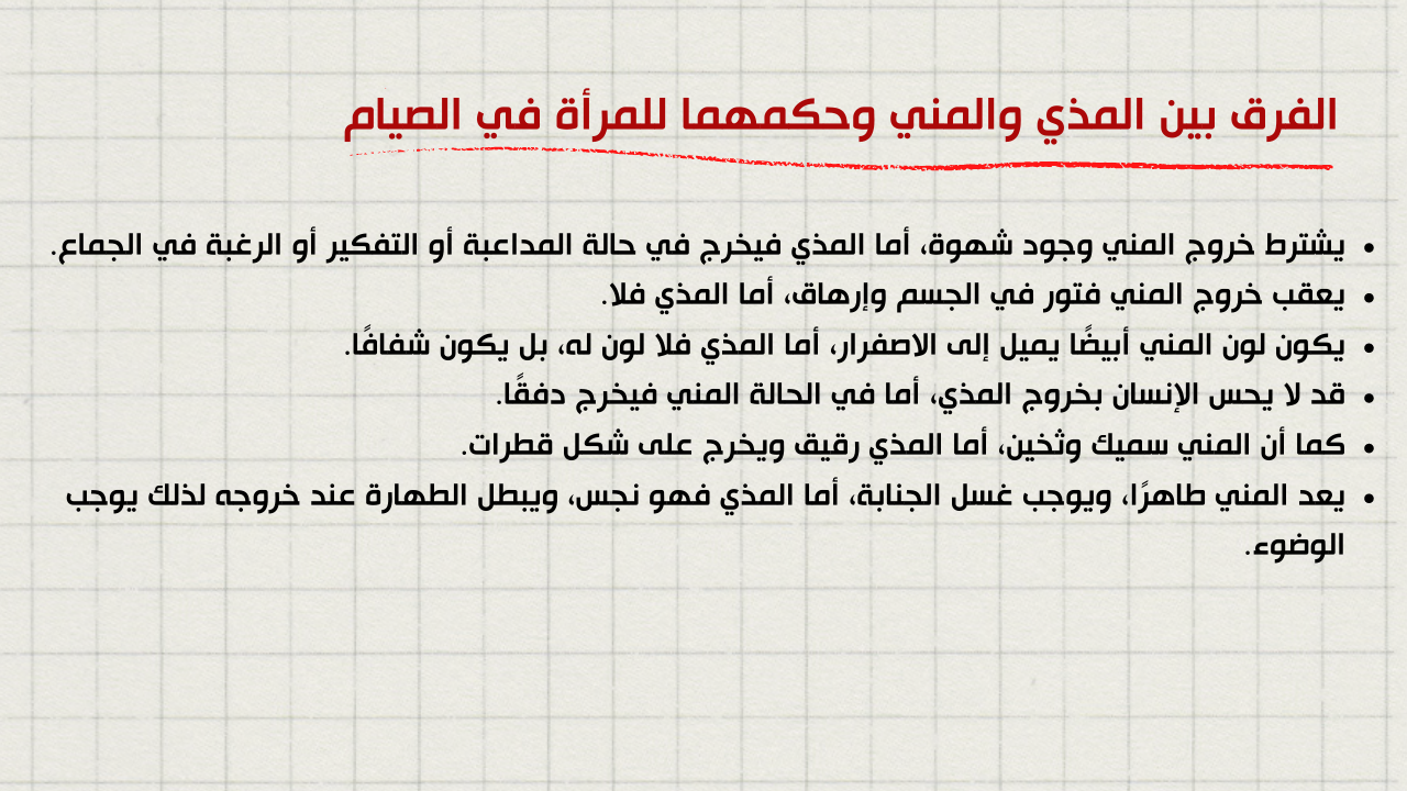 الفرق بين المذي والمني وحكمهما للمرأة في الصيام