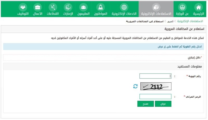 - قم بإدخال بيانات الشخص الذي تريد الاستعلام عن مخالفته.