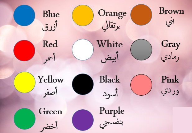 عدد الألوان الأساسية سبعة أولان فقط، وعبر خلط هذه الألوان مع بعضهما البعض ينتج اولان أخرى، وفيما يل نعرض لكم أسماء الألوان بالإنجليزي والعربي: