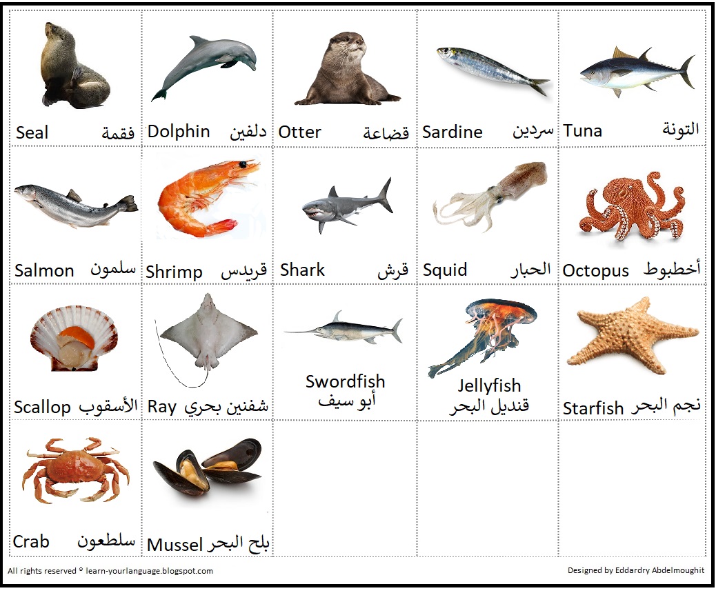 في عالم البحار يكون فيه العديد من الحيوانات المائية وكذلك الحيوانات البرمائية أيضا، والاسماء الي تعيش في البحر والمحيطات، ومن اسماء حيوانات واسماء أسماك البحر هي كالتالي:
