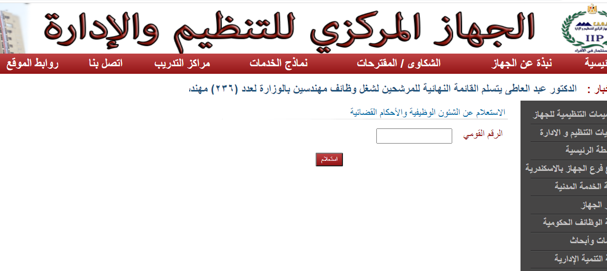 الاستعلام عن الشئون الوظيفية بالرقم القومي