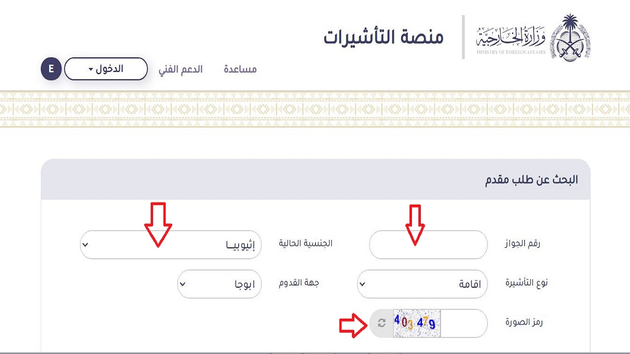 - ومن خلال ذلك يمكن الحصول على حالة طلب التأشيرة للاستعلام عنها.