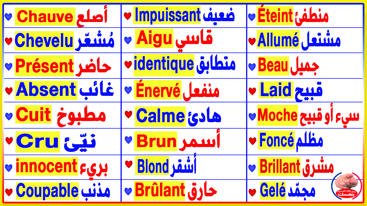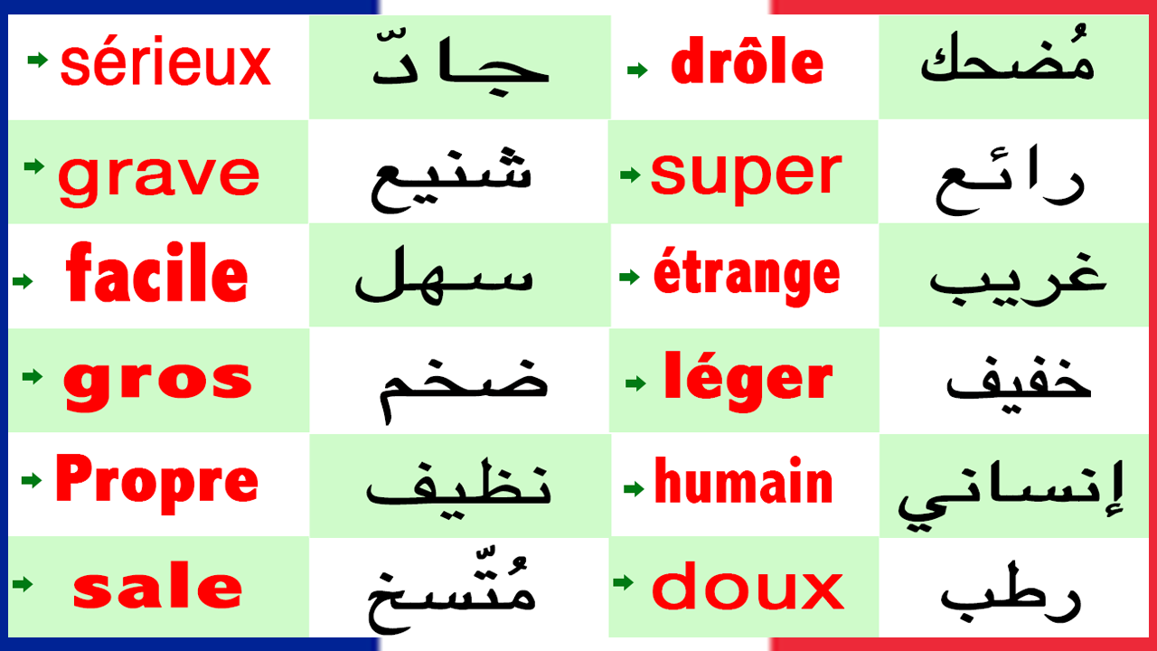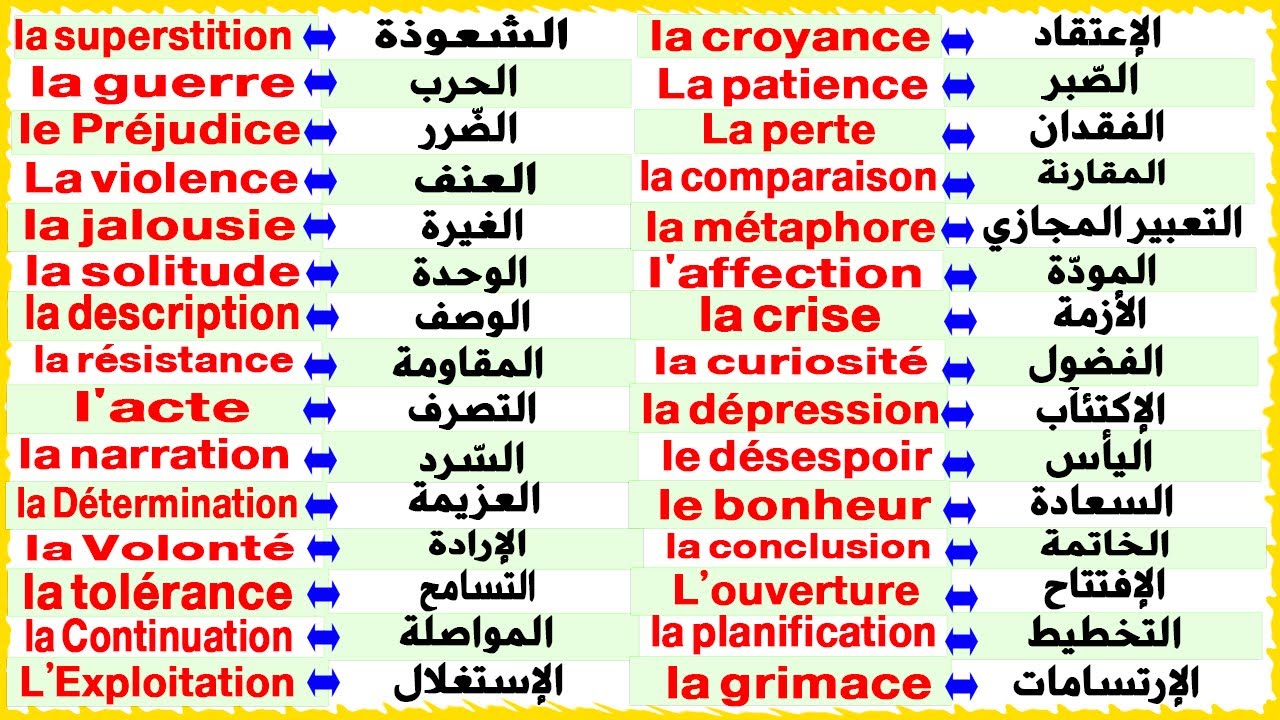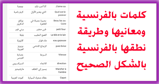 كلمات فرنسية مترجمة بالعربي مع النطق