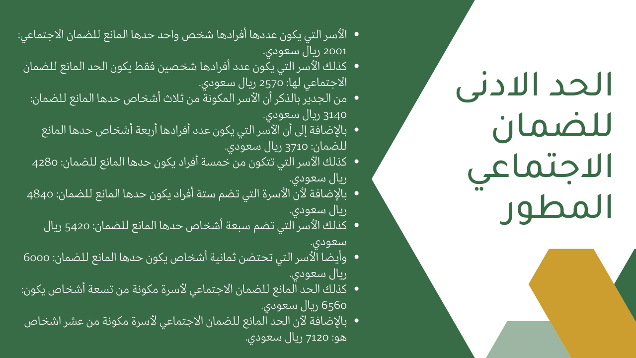 الحد الادنى للضمان الاجتماعي المطور، كونه من الأنظمة التي طورتها المملكة العربية السعودية بشكل كبير، ودشنت فيه الكثير من التغيرات والتحديثات التي تجعله ماضياً على نهجٍ الحداثة والتطوير الذي يضمن تحقيق نهضة كبيرة في المملكة، ويتخصص الضمان الاجتماعي في تقديم الدعم اللازم للمواطنين والذي يساهم بدوره في تخطي الكثير من المشكلات والعوائق المالية اليت يواجهونها في حياتهم والتي يساعد تجاوزها على منحهم حياة كريمة، لهذا نتبين الحد الادنى للضمان الاجتماعي المطور.