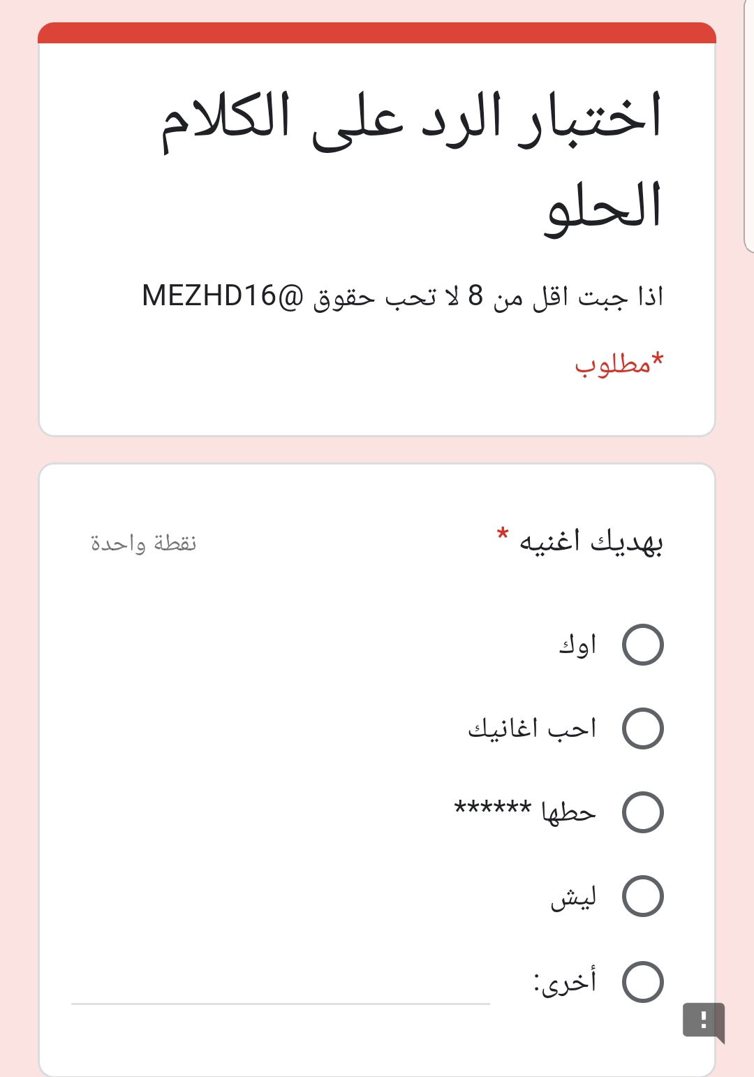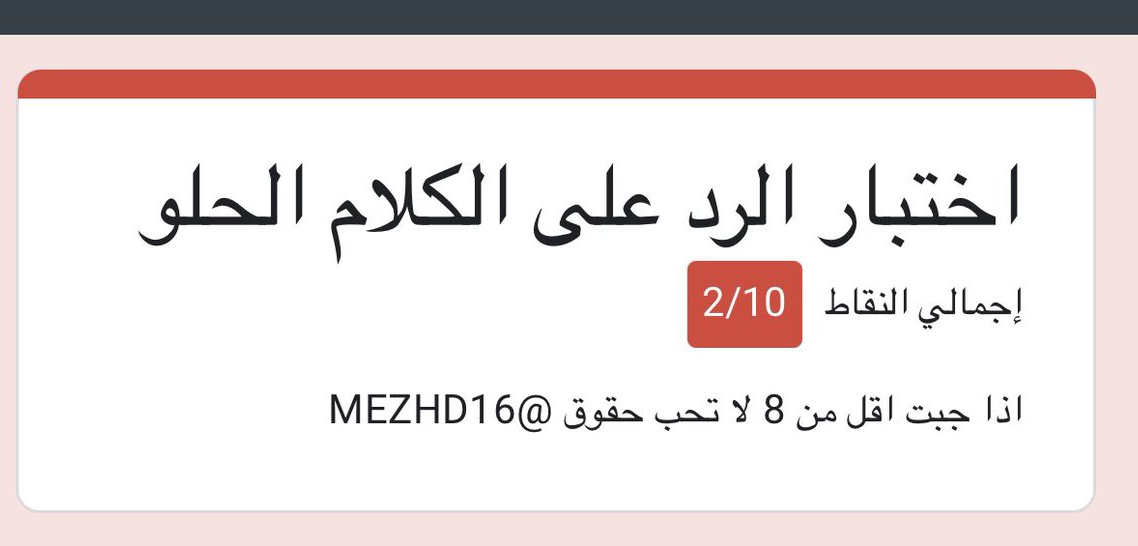 - واليكم رابط الدخول لاِختبار الرد على الكلام الحلو من خلال الضغط https://docs.google.com.