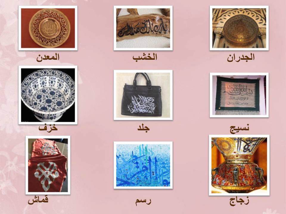 - الزخارف الكتابية: اعتمد هذا النوع من الزخارف على الكتابات للكلمات القرآنية والأحاديث بالتشكيل الصحيح.