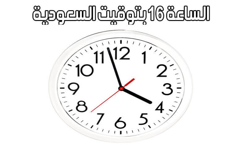 تكون الساعة 16 بتوقيت المملكة العربية السعودية تعادل الساعة الرابعة مساءً، ومن الجدير ذكره أن الساعة 16 تكون ضمن نظام 24 ساعة هي الساعة الرابعة على مستوى كافة أنحاء العالم وليس فقط على مستوى المملكة العربية السعودية على وجه التحديد، فيكون هذا النظام يسير في كافة الدول التي تستخدم النظام الرقمي 24 ساعة، ولا بد الإشارة أن الساعة السادسة عشر ضمن توقيت المملكة العربية السعودية تكون موافقة الساعة الثالثة عشر ضمن توقيت غرينتش العالمي.