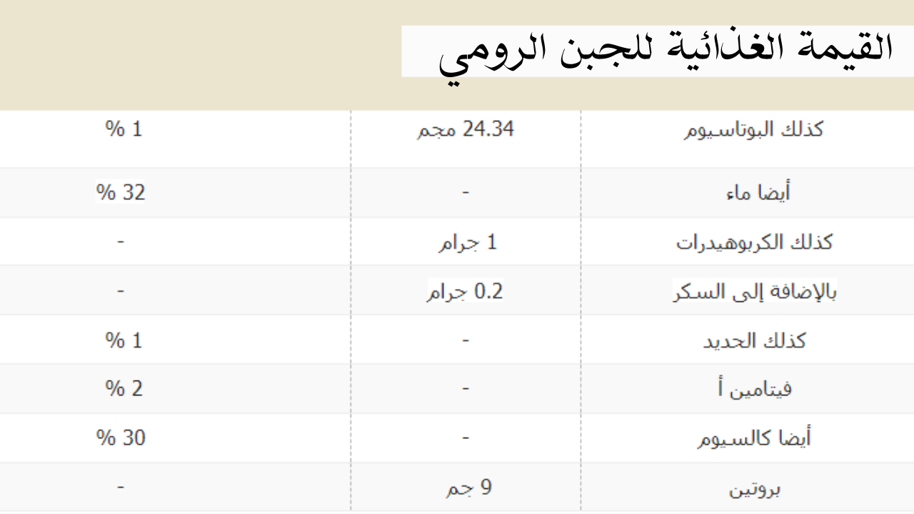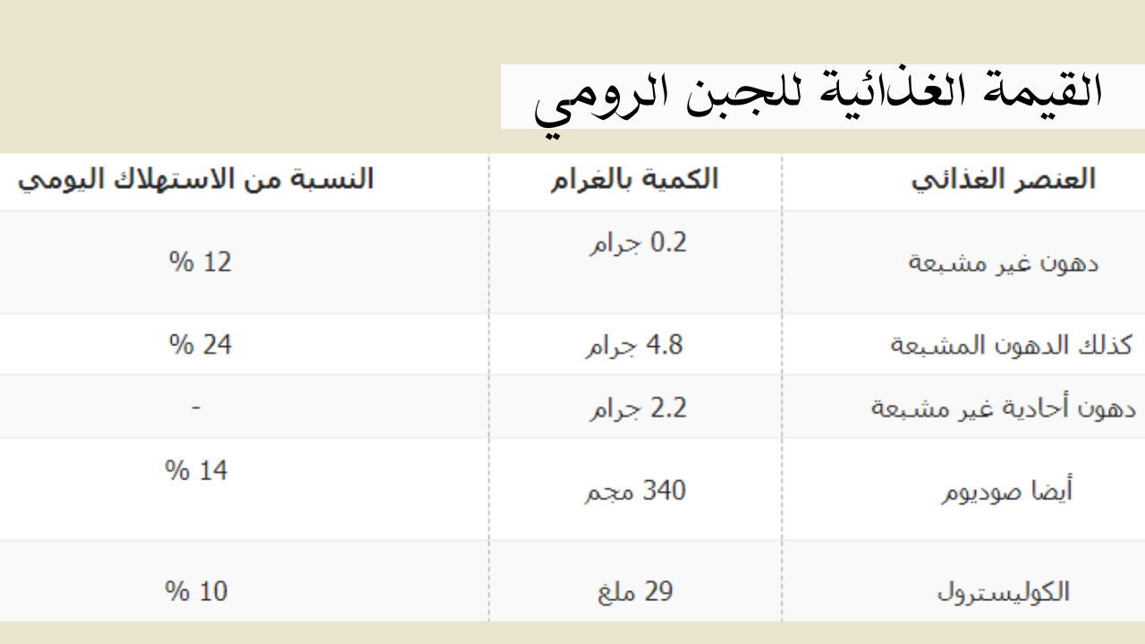 القيمة الغذائية في الجبنه الرومي “السعرات الحرارية”