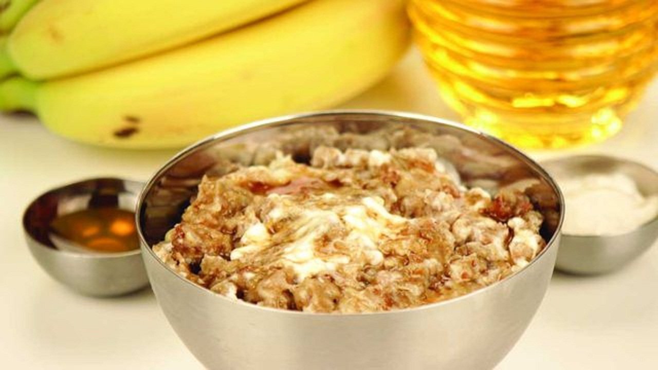 - كذلك يتم هرس الموز واضافة الخبز المطحون عليه.