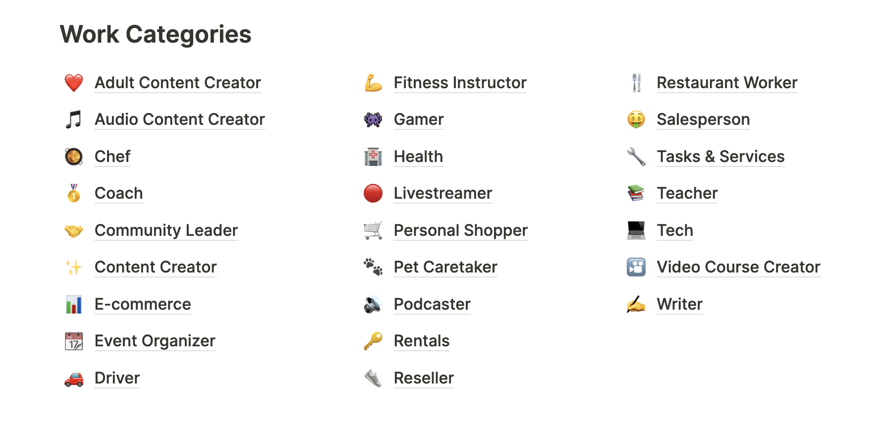 مجالات العمل في موقع سايد هاسل ستاك كثيرة ومتنوعة تتناسب مع العديد من اختيارات الافراد المختلفة، اذ ان كل فرد له رغبة خاصة به لا تتوافق مع غيره من الافراد، فيما يلي سوف نتعرف الى مجالات العمل الحر على موقع side hustle stack: