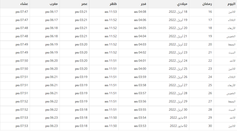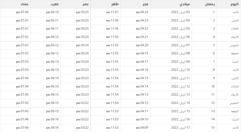 امساكية رمضان 1446 بريدة وأهمية إمساكية رمضان، يأتي شهر رمضان في كل عام حامل معه الخير والرحمة والمغفرة والعتق من النار من الله عز وجل، حيث ينتظر هذا الشهر المبارك كافة المسلمين على وجه الأرض، كما يعد الصيام هو أكثر ما يميز شهر رمضان، يبدأ الصيام منذ آذان الفجر حتى آذان المغرب يمتنع المسلمون عن الأكل والشرب، حيث يحتاج حيث الصائمون معرفة أوقات الأذان للفجر والمغرب حتى يتمكنوا من ترتيب أمورهم فيما يخص الصيام، والان سنقوم بعرض إمساكية احدى البلدان المسلمة.