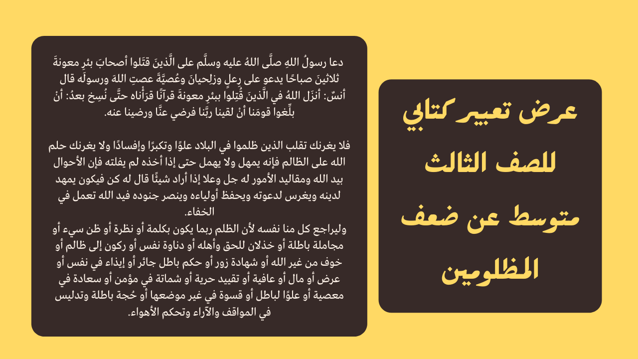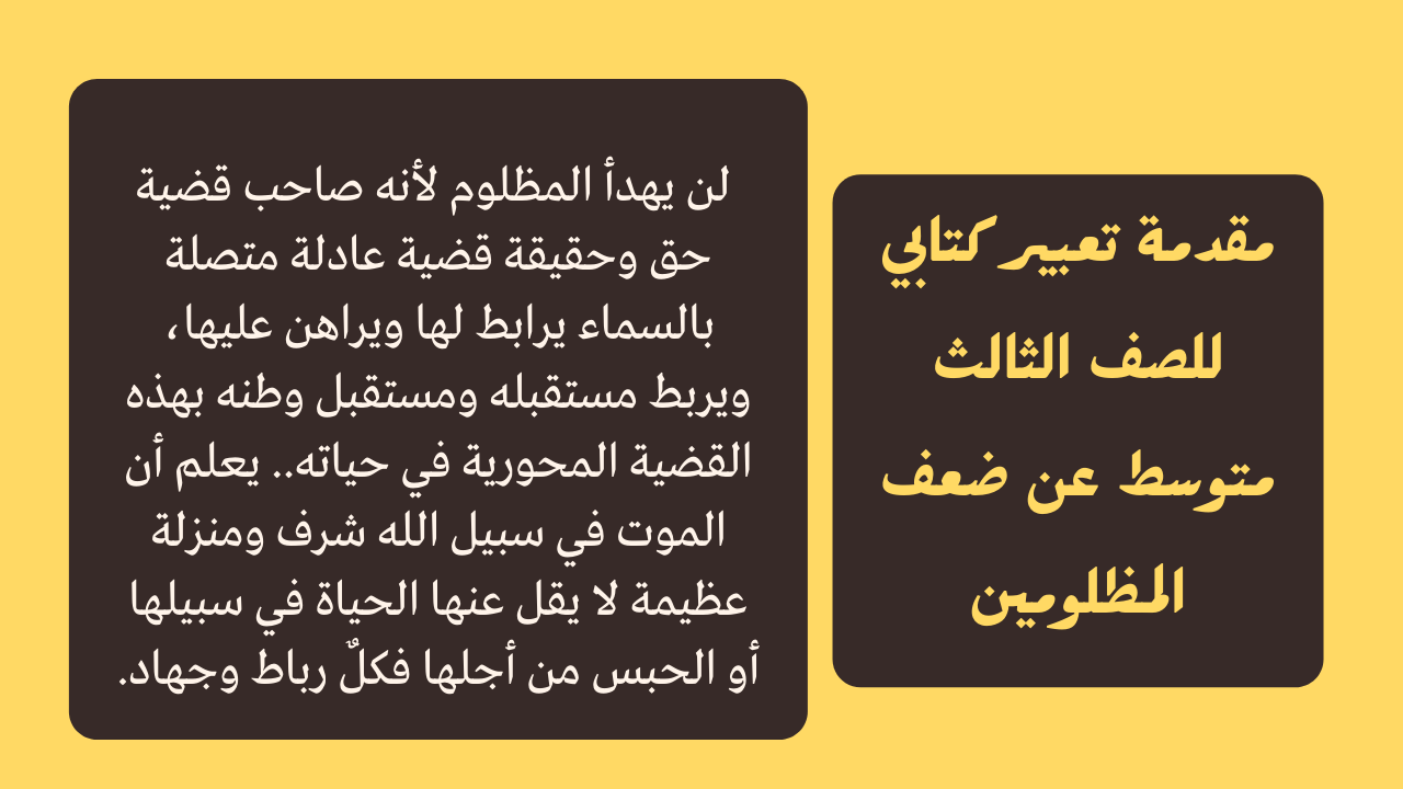 عرض انشاء كتابي للصف الثالث متوسط عن ضعف المظلومين