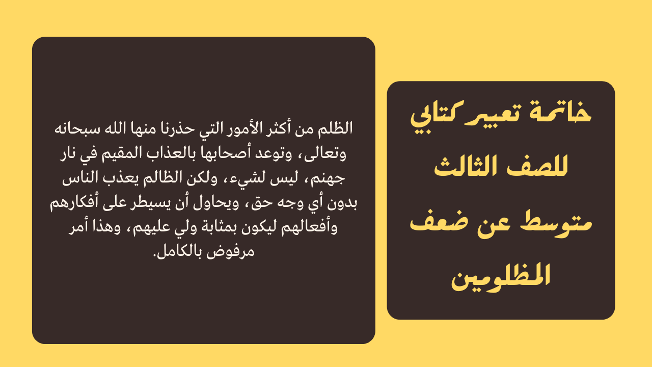 خاتمة انشاء كتابي للصف الثالث متوسط عن ضعف المظلومين