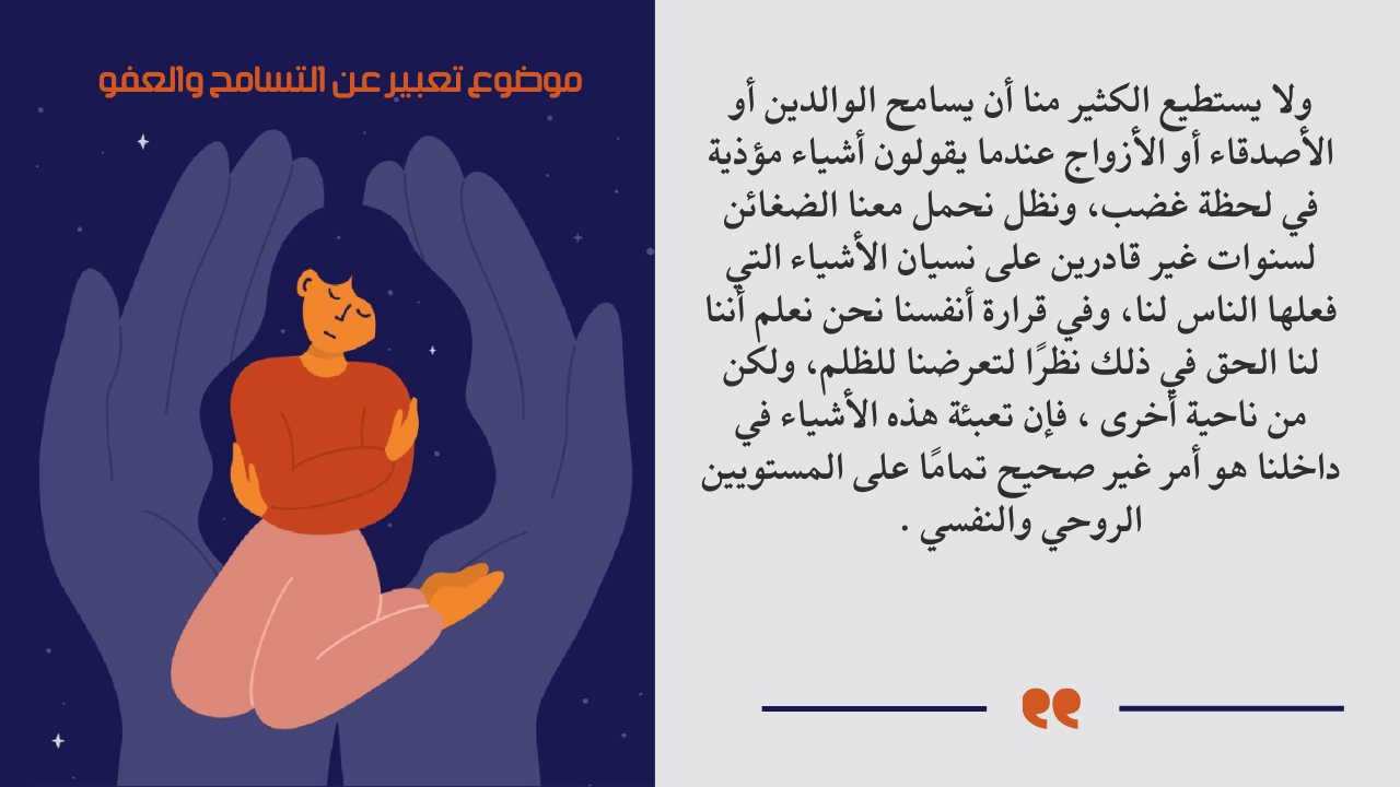 - كما أن في العفو والتسامح راحة للقلب وسكينة للروح وطمأنينة للنفس.