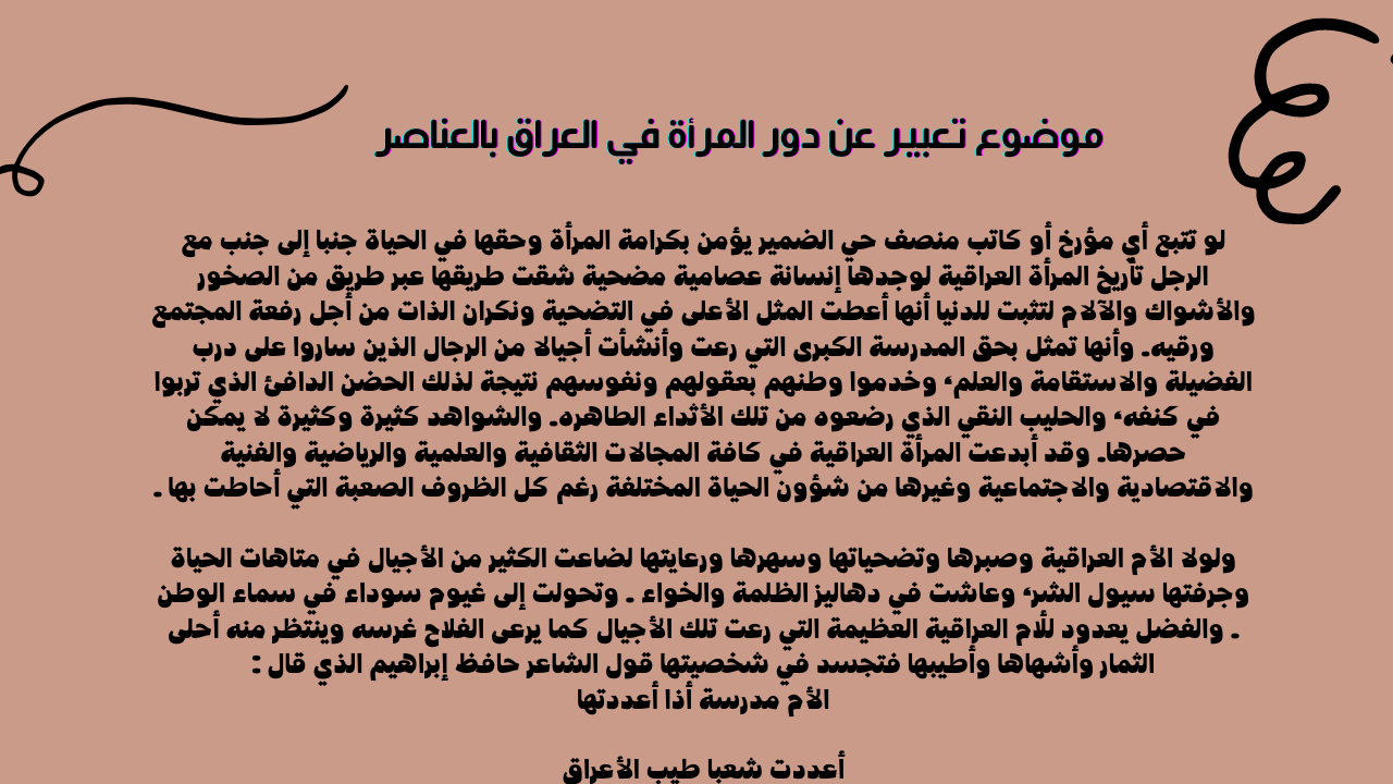 موضوع تعبير عن دور المرأة في العراق بالعناصر