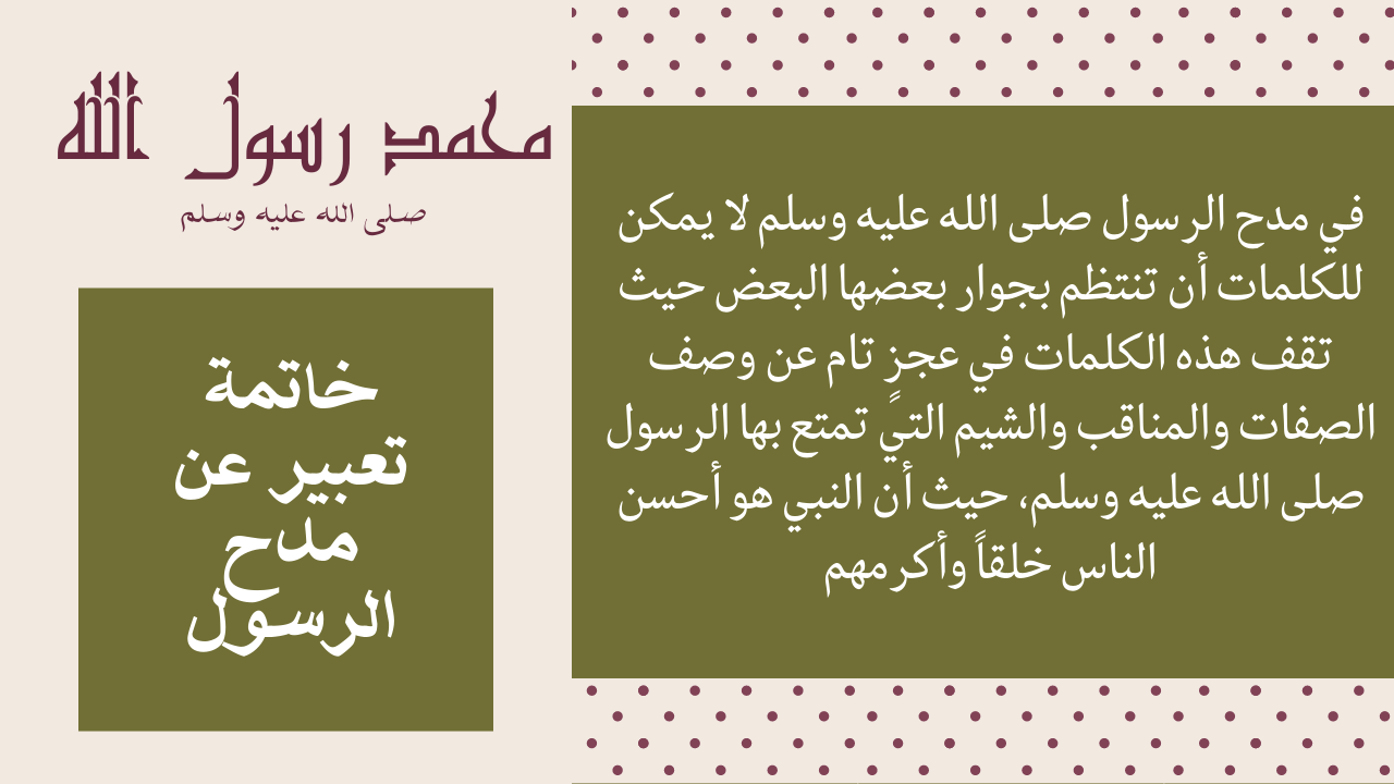 - وفي ختام موضوعنا الذي تناولنا فيه الحديث عن مدح النبي صلى الله عليه وسلم.