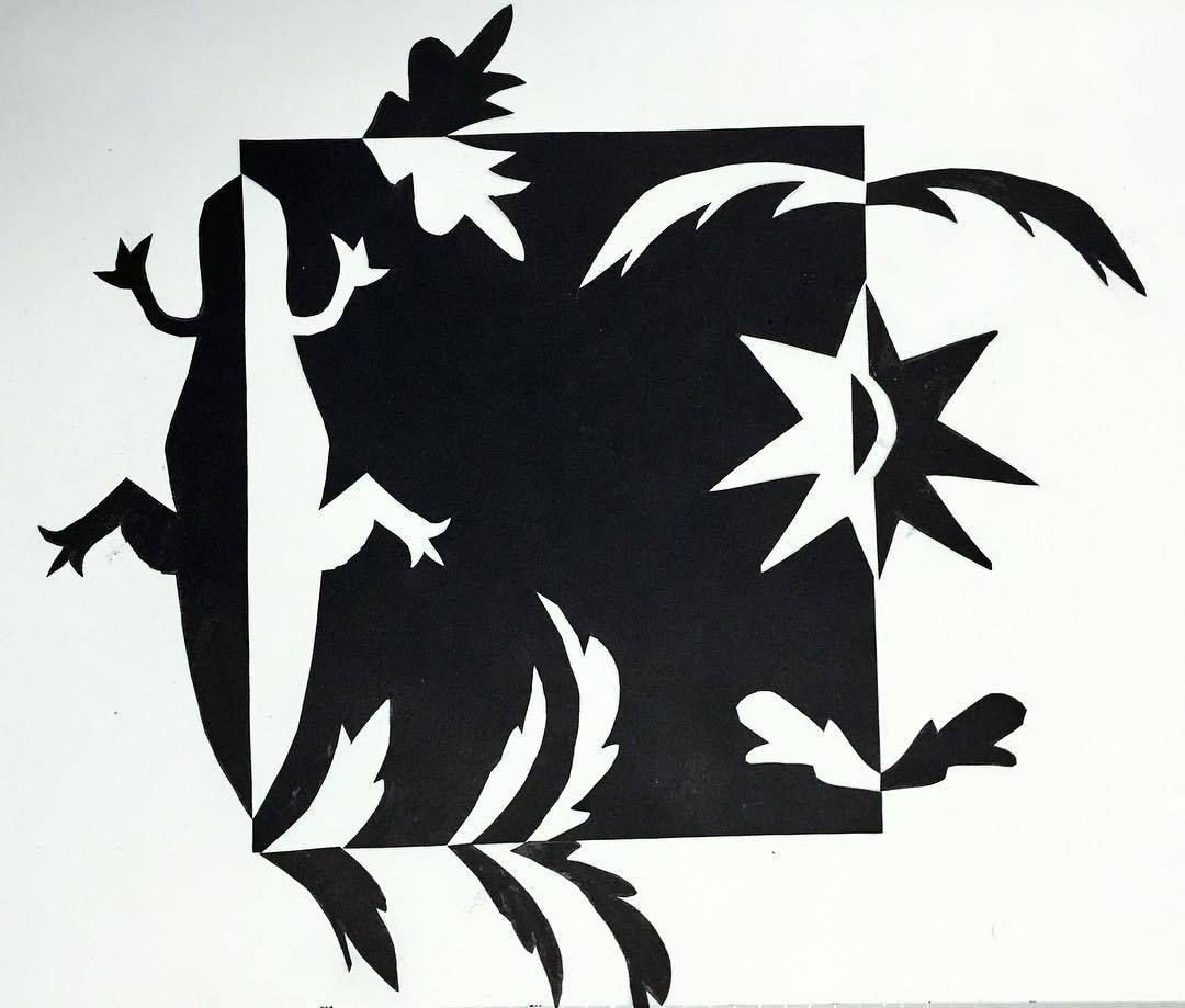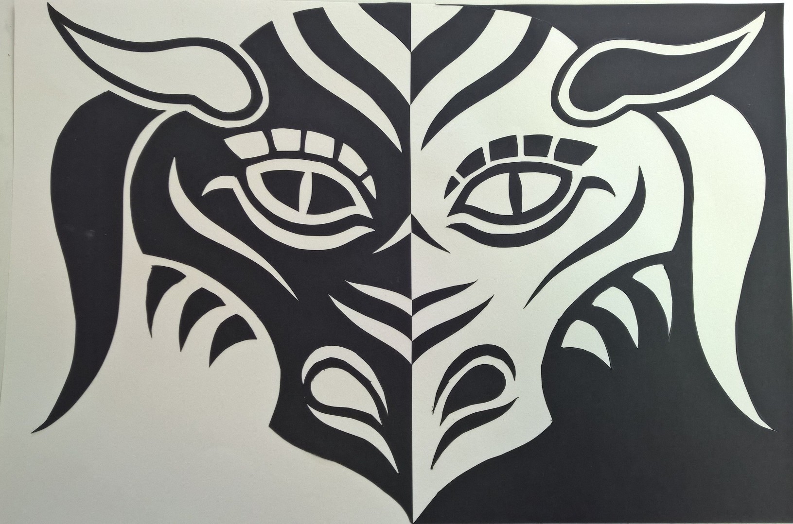 | كذلك توضع الرسومات على ورقة بيضاء بشكل متماثل |