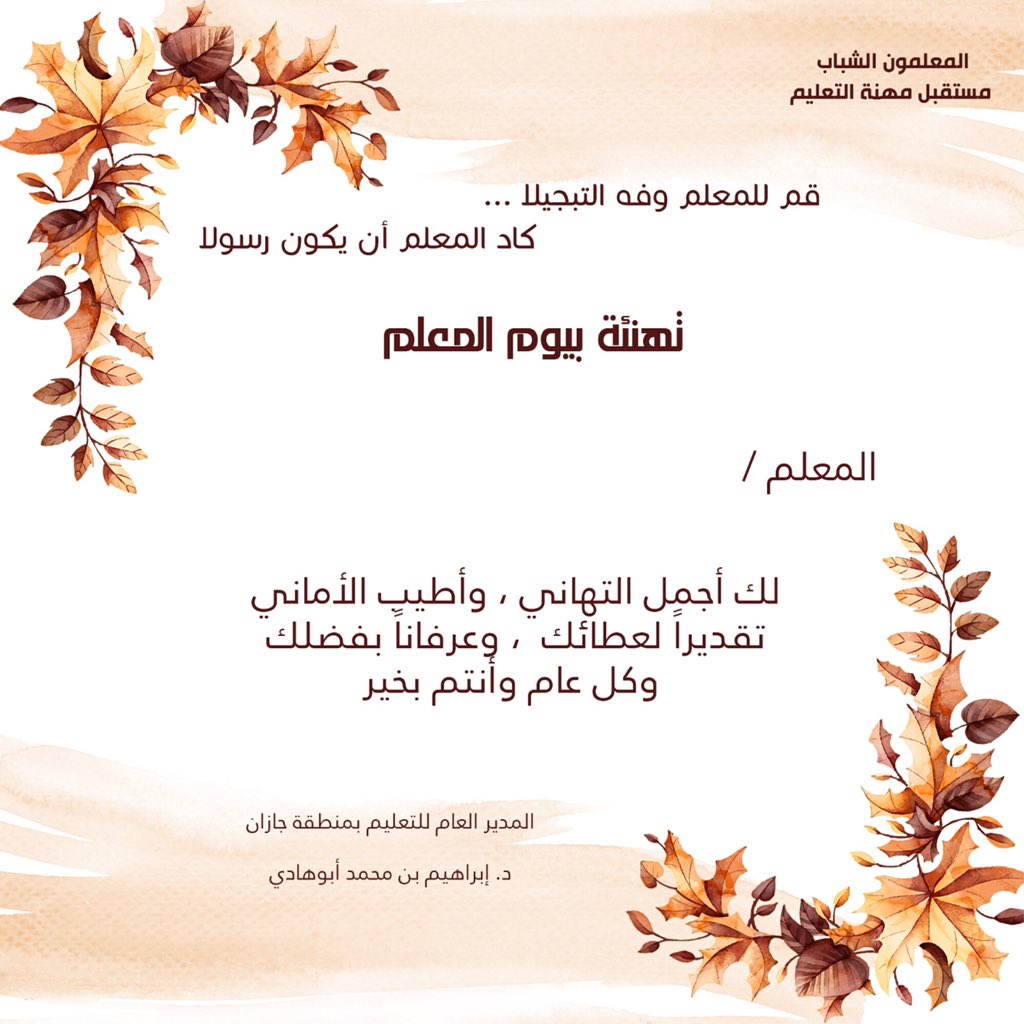 بطاقة تهنئة للمعلم بمناسبة يوم المعلم