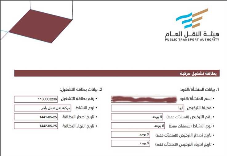 استخراج كرت تشغيل إلكتروني نقل خاص