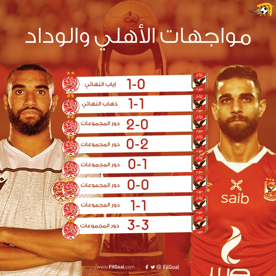 يعتبر كلا من فريق الاهلي وفريق الوداد الغربي من ابرز الفرق المتواجدة في عالك كرة القدم، وهنالك الكثيرون من الناس يتساءلون عنهم، وفيما يلي من نقاط كافة التفاصيل المتاحة حول مواجهات الاهلي والوداد المغربي: