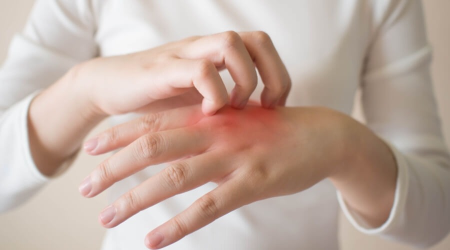 - في حال تم جفاف الجلد للمصاب فإنه يتم زيادة الحكة، وتقشير الجلد.