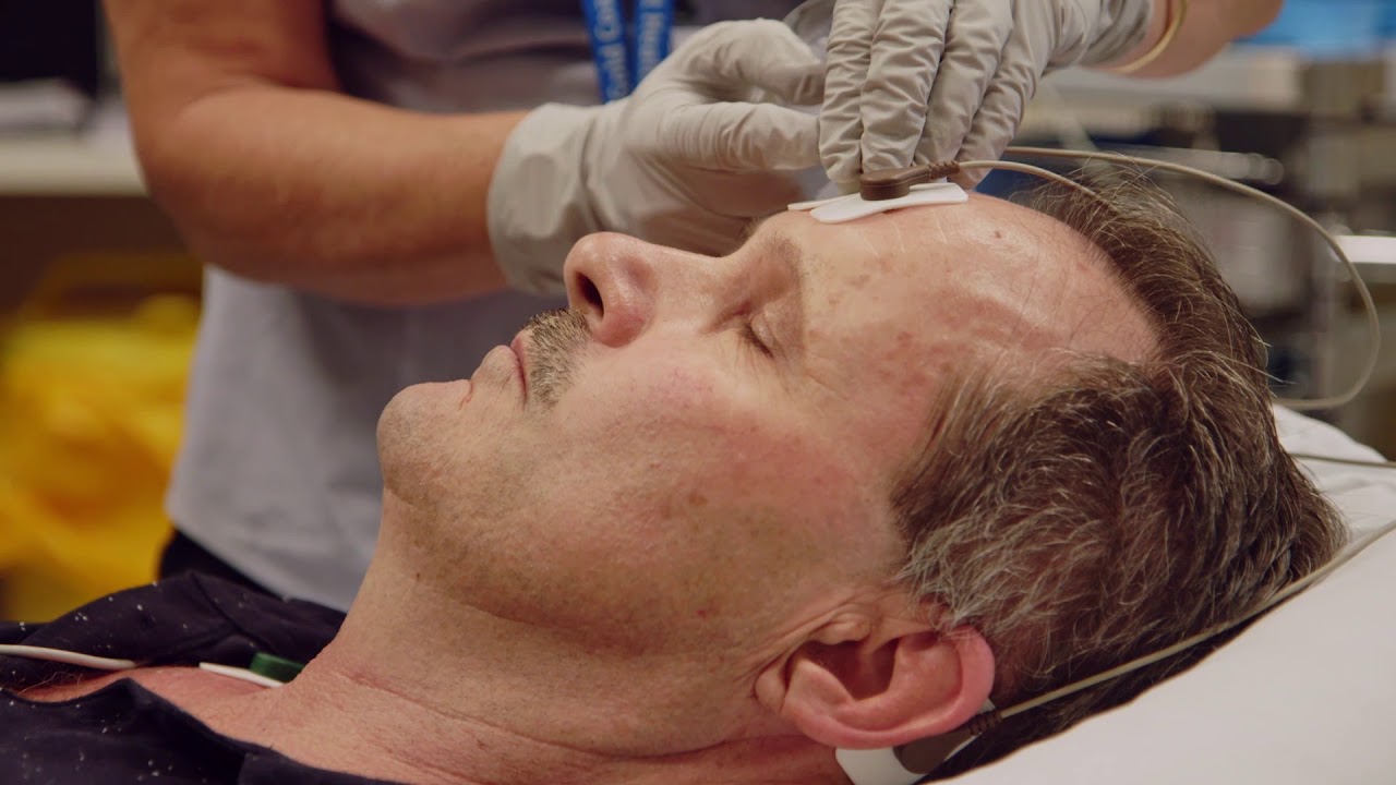 - بعدها يقوم الطبيب بوضع قطبين في كل جهة من الدماغ.