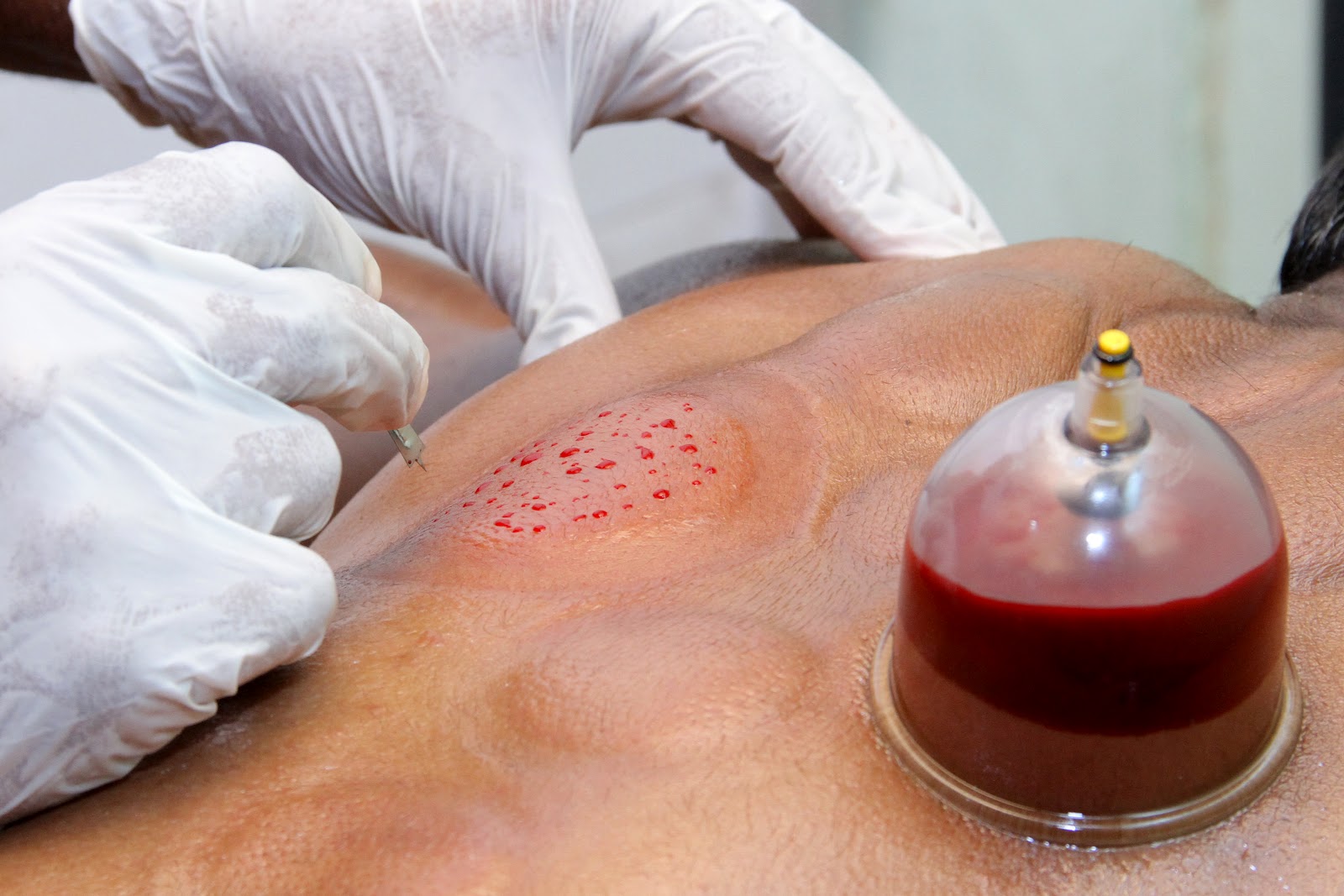 - علاوة على ذلك يمكن إحداث جرح بسيط، وبهذه الطريقة يخرج الدم الفاسد من الجسد وكذلك يتم التخلص من السموم.