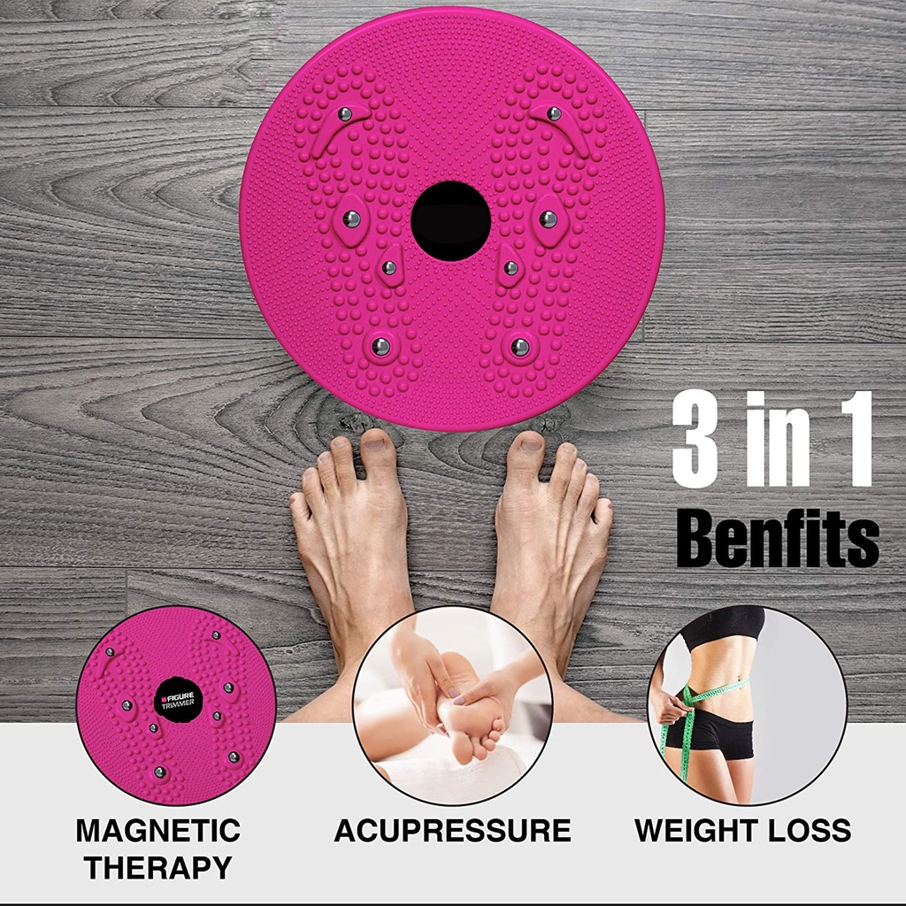 - كذلك يقوم القرص الدوار بتمرين العضلات في منطقة الخصر ونحت الدهون والحفاظ على التوازن.