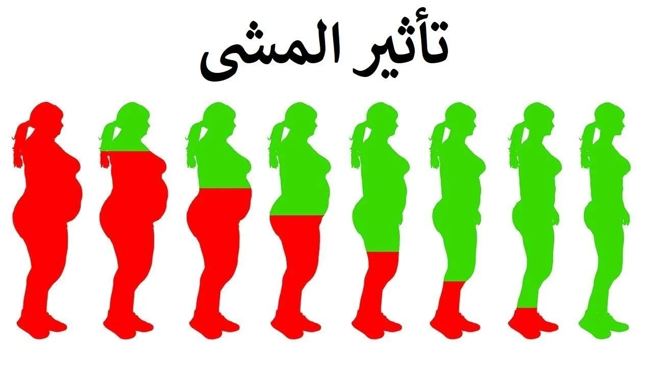 - لذلك فان النتائج تظهر على الجسم عند المشي في الفترة ما بين ستة الي ثمانية اسابيع لتلاحظ الفرق في الوزن.