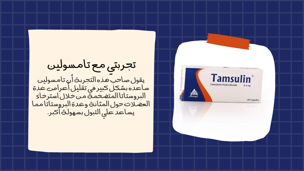 تجربتي مع تامسولين Tamsulosin لعلاج التضخم الحميد للبروستاتا كونها من ضمن التجارب التي يستفيد منها الرجال الذين يعانون من ذات هذه المشكلة، ويتمكنون من خلال هذه التجربة من معرفة كل ما يحتاجون له من معلومات.