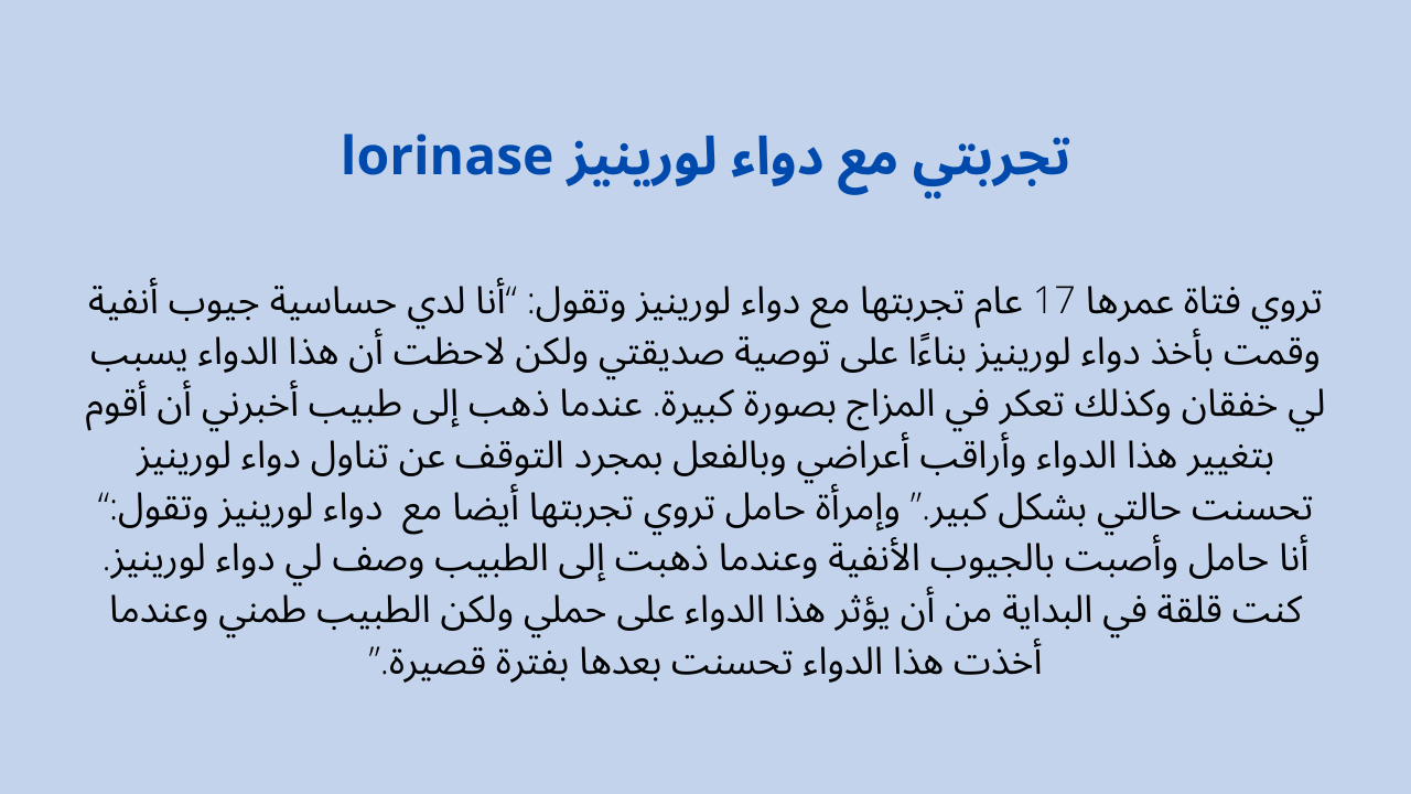 تجلت أهمية دواء لورينيز lorinase في الحد من الأوجاع والحصول على جهاز تنفسي يقوم بدوره بصورة فعالة ومتميزة في أوقات الانفلونزا والرشح، وجاء هذا تبعاً للمكونات والتراكيب الفعالة فيها، ومن هذا القبيل فإننا سنرفق بعض التجراب التي دشنها أفراد كثر خاضوا تجربة علاج الجهاز التنفسي وفقاً لدواء لورينيز lorinase: