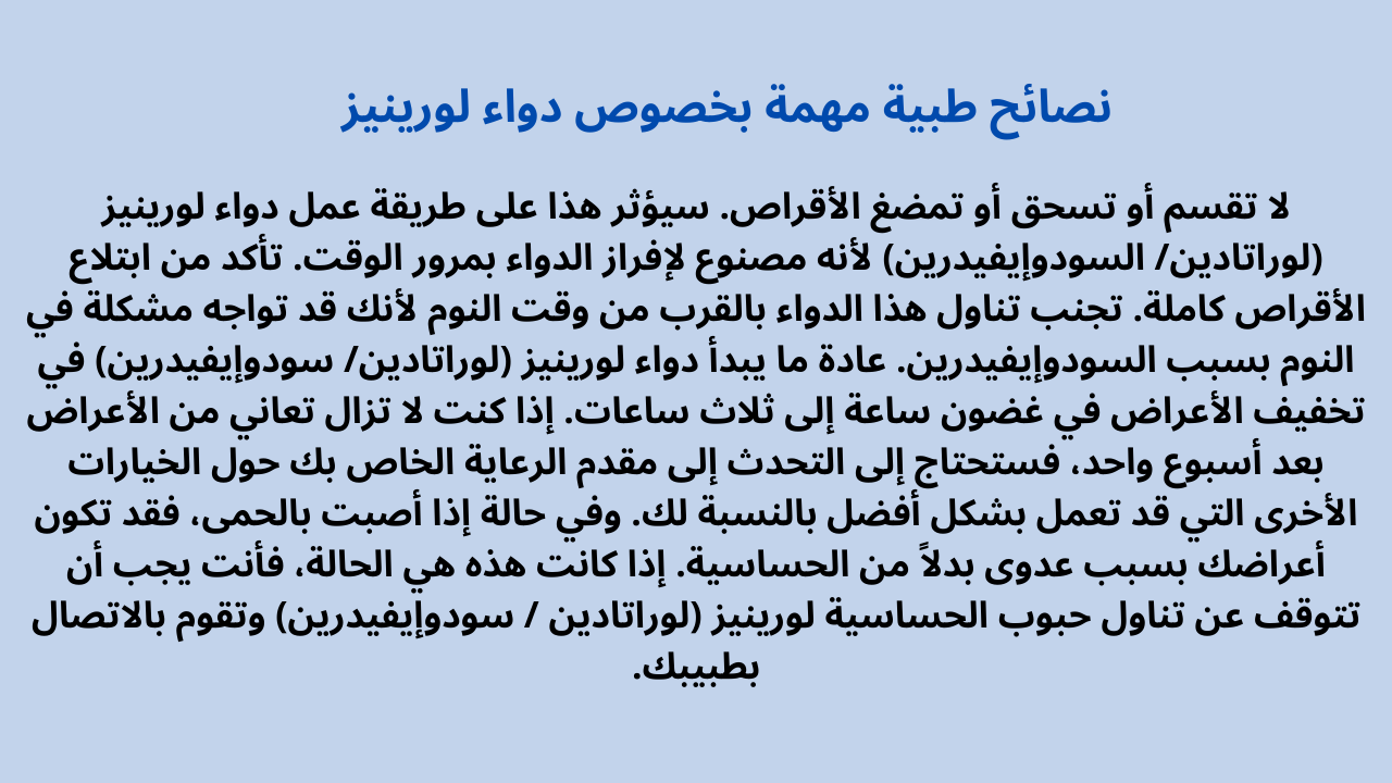 نصائح طبية مهمة بخصوص دواء لورينيز