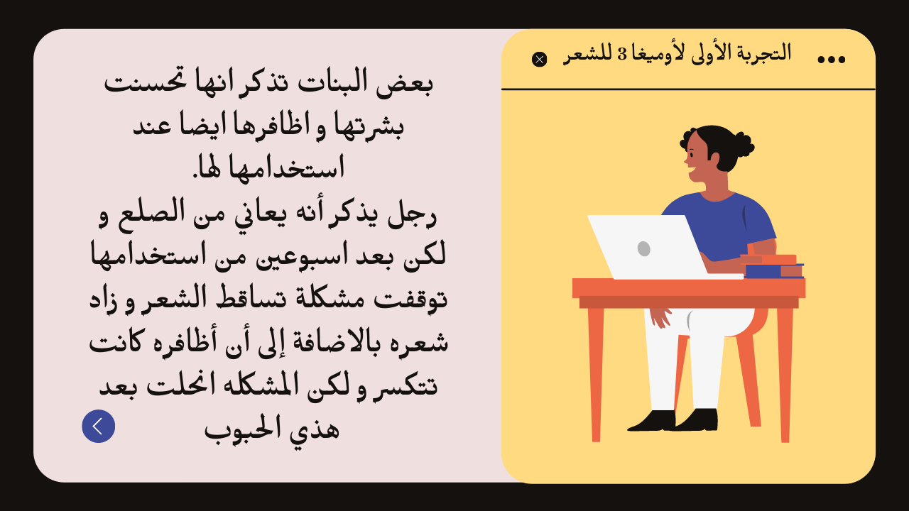 تعتبر تجربتي مع فرد اوميغا 3 للشعر أكثر ما تم البحث عنه.. حرصاً من قبل عدد لا بأس به من السيدات في الآونة الأخيرة، على اطلالة شعر مميز، والحصول على شعر حوي ناعم وغير مجعد، ولا يظهر عليه المشكلات الصحية، من تقصف وضعف في الشعر ذاته، فإنها قد كرست الكثير من وقتها لأجل البحث عن فوائد أوميغا 3 للشعر، والتي أطلقتها عدد من الأخريات اللواتي دونها في تجربتهن لأوميغا 3 للشعر، ومن هنا نرفق لكم التجارب، والتي جاءت وفق التالي: