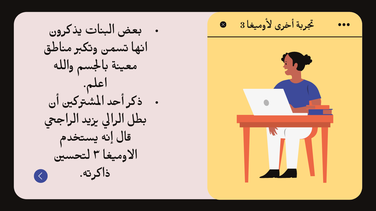- كما وتختلف الجرعة، بناء على نوع أوميجا 3 التي يتناولها الشخص.