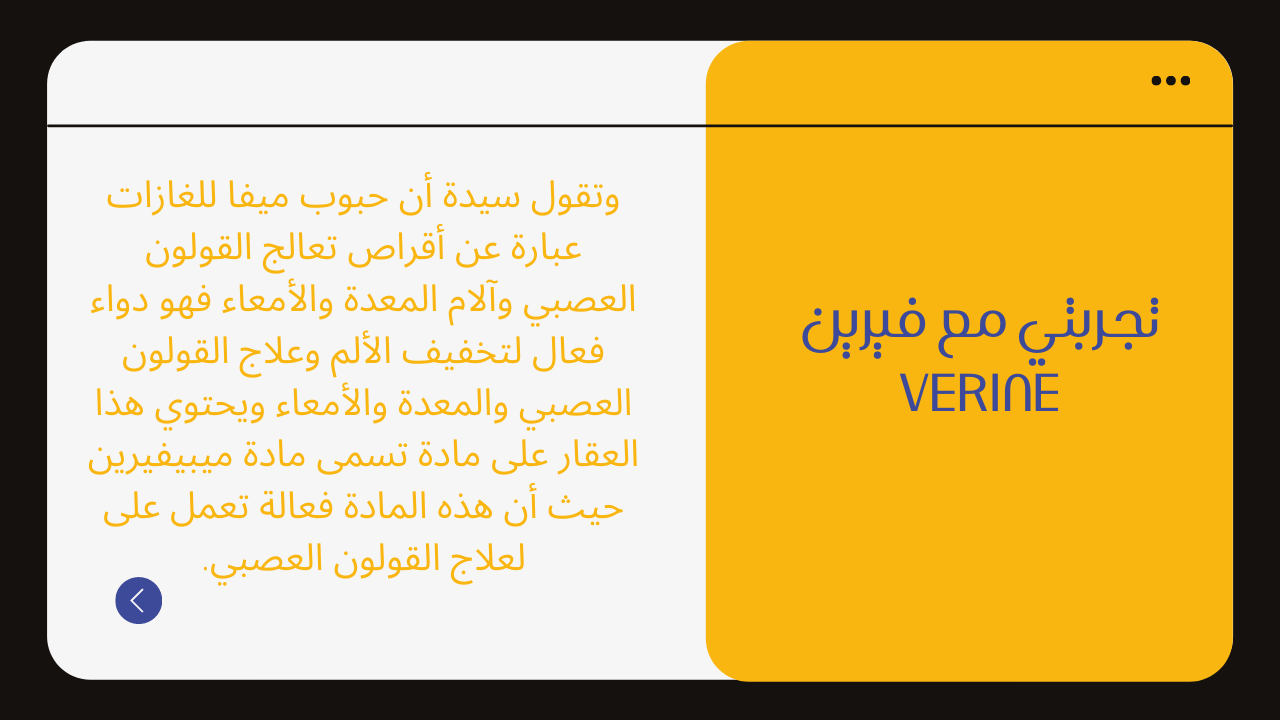 - أما فيما يتعلق بالحمل والرضاعة، فيجب استشارة الطبيب قبل البدء بتناول حبوب فيرين، لعلاج تشنجات القولون.