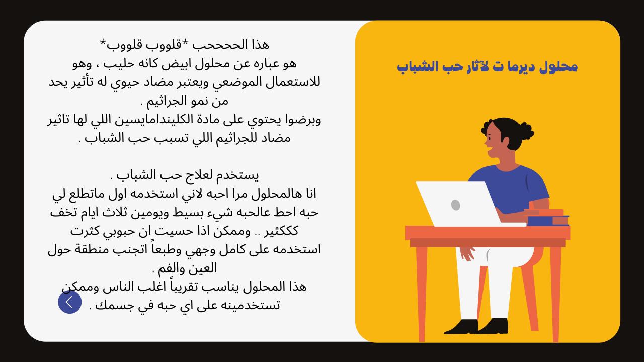 يعتبر محلول ديرما ت Derma T من بين أبرز ما تم استخدامه لعلاج المشكلات الجلدية، وجاءت هذه الاستخدامات المهمة له جراء احتوائه على الكثير من المواد الفعالة فيه والتي كانت في مقدمتها مادة “الكلينداميسين”، المادة التي قدمت دوراً مهماً وتأثيراً بارزاً وجلياً في القضاء على مشكلة حب الشباب الذي جاءت أسباب عديدة لظهوره ما بين أسباب بكتيرية أو غيرها، ومن هنا فإننا سنجمل دواعي استخدام محلول ديرما ت Derma T للتخلص من آثار حب الشباب وغيرها: