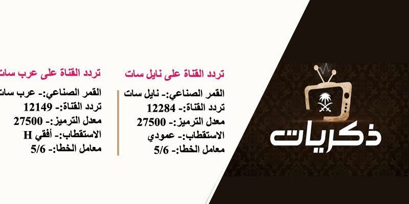 يقوم مكتب الإذاعة والتلفزيون في السعودية بالإشراف العام على قناة ذكريات التي تعمل على تقديم المحتوى المميز، فهي تعمل على عرض العديد من البرامج والمسلسلات التي تتحدث عن العادات والتقاليد الخاصة بسكان المملكة العربية السعودية، فقد قام عدد من المشرفين على القناة بضبط أجهزة الاستقبال على عدد من الأقمار الصناعية، فيرغب عدد من الأشخاص الحصول على التردد الخاص بالقناة، لهذا سنتعرف عبر هذه السطور على ذكريات على قمر عرب سات، كما يلي: