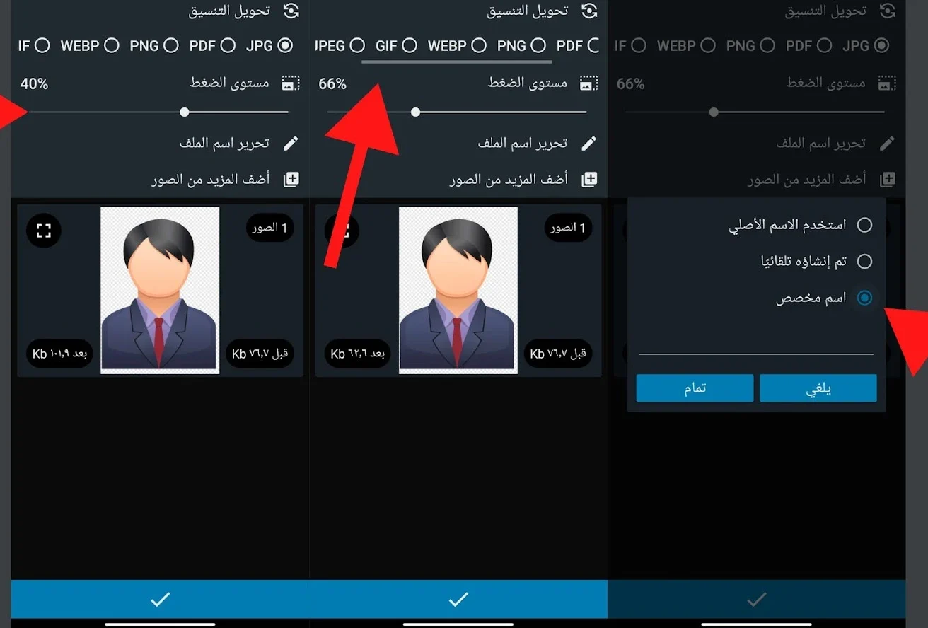 - كذلك يتم العمل على تقليل نسبة ضغط الصور الذي ترغب بها، وكذلك تقليل حجم الصور بالنسبة التي تريدها.