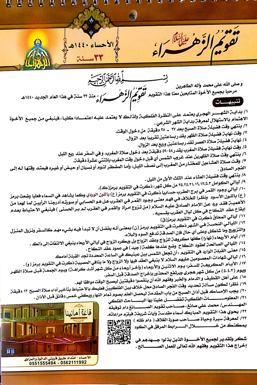 التنبيهات العامة في تقويم الزَهراء الاحساء 1446